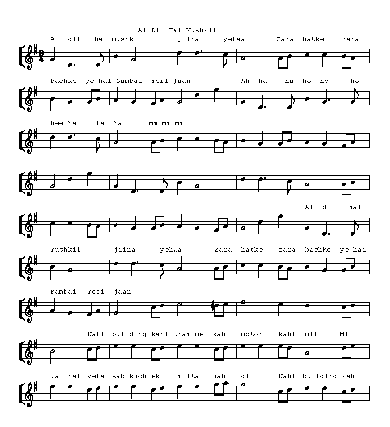 Ai dil hai mushkil jeena yeha / Zara hatke zara bachke / Ye hai Bambai meri jaan... Well ok, the tune is basically "Oh My Darling Clementine". But Clementine was never quite like this. From one of the greatest of Hindi cinema' s very particular version of film noir, an ode to the city where it all came together.