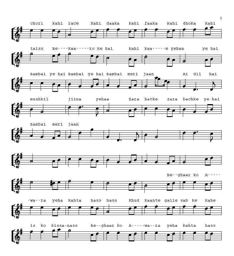 Ai dil hai mushkil jeena yeha / Zara hatke zara bachke / Ye hai Bambai meri jaan... Well ok, the tune is basically "Oh My Darling Clementine". But Clementine was never quite like this. From one of the greatest of Hindi cinema' s very particular version of film noir, an ode to the city where it all came together.