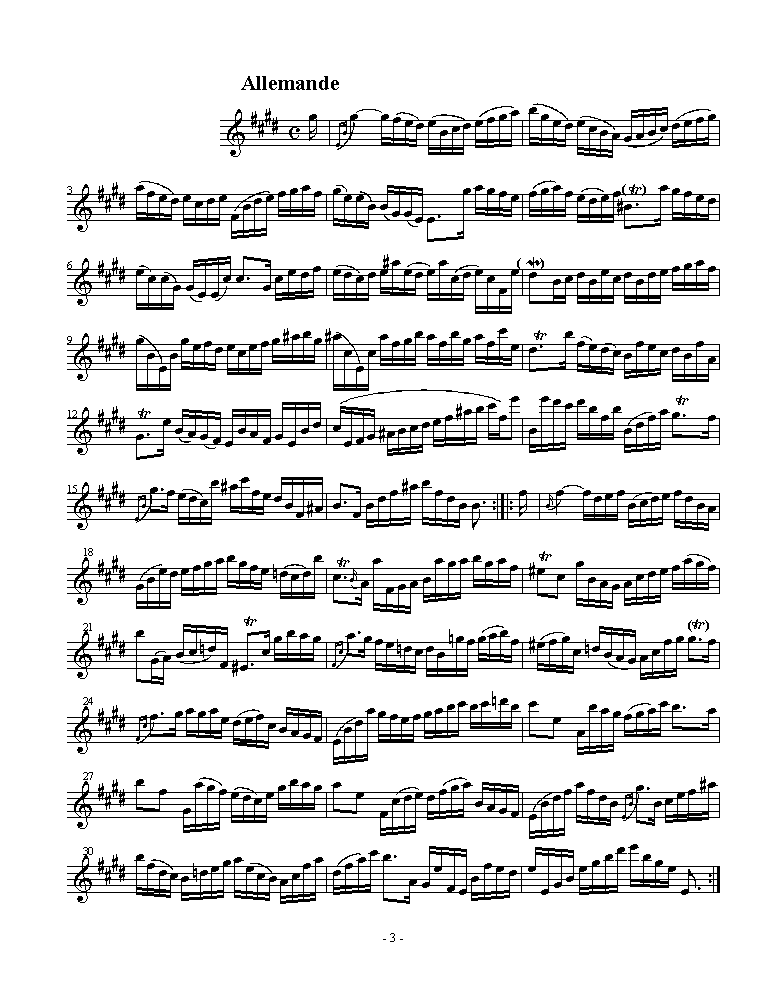 Bach's suites for unaccompanied cello lend themselves to playing on the unaccompanied flute perhaps more readily than anything else he wrote (except, obviously, the Partita in A for unaccompanied flute, and perhaps the Flute Sonata in C, which may have originally been written to be played unaccompanied...) And this first suite is probably the most readily adapted to the flute of all of them. You can actually play them from the original bass clef cello music quite easily, just by assuming a treble clef and mentally applying a key change... but I did eventually get around to making my own music, which makes things a little easier. Again done in Finale.