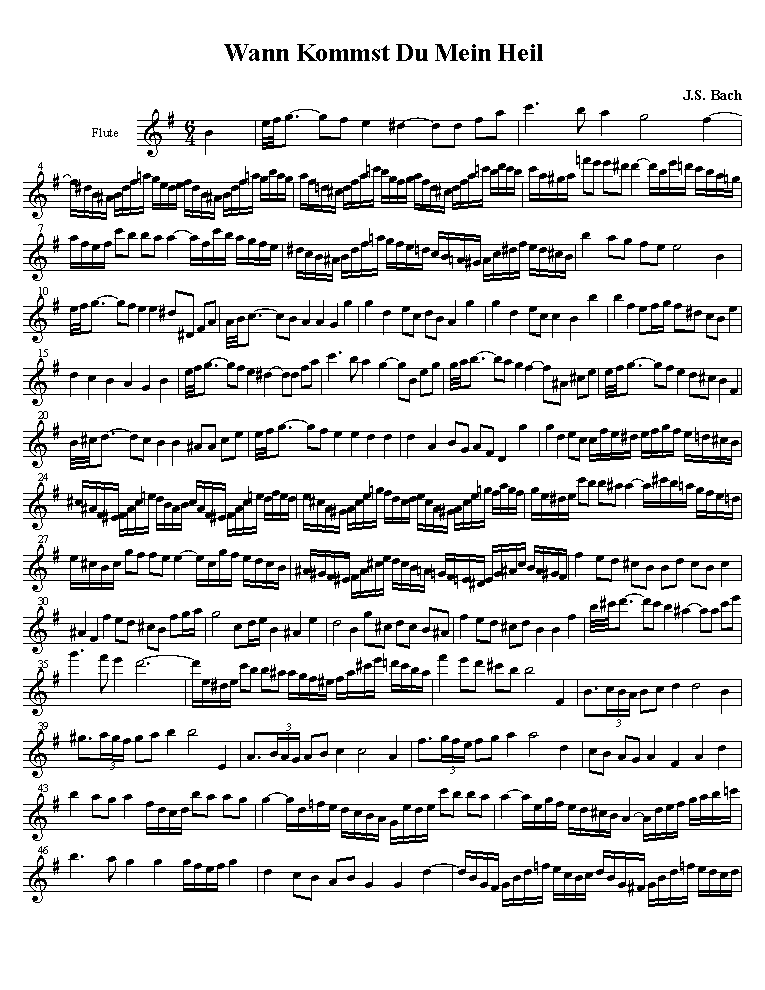 This is the duet from the very well known Cantata Wachet Auf, Ruft Uns Die Stimme. It's extremely engaging, but quite honestly I'd have to admit that, at least in this arrangement, it's rather a pig to play on the flute (especially the one-keyed flute, given it's rapid, extremely chromatic passage work, including high f's and f#'s - it's a little more manageable on a 6 or 8 keyed flute). Also done in Finale. (Actually I originally did this in Cubase, but I transferred it to Finale, via MIDI, because I could never get the Cubase version properly readable.)